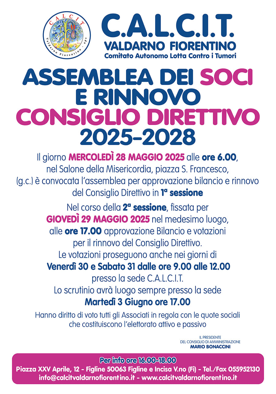 Si comunica la convocazione dell’Assemblea dei Soci del Calcit per il Rinnovo del Consiglio Direttivo 2025-2028.